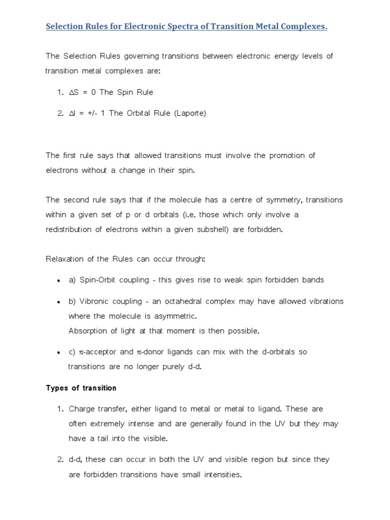 Laporte Selection Rule - Http Web Uvic Ca Djberg Chem324 Chem324 10 Pdf - The laporte rule is a spectroscopic selection rule that only applies to centrosymmetric molecules the rule originates from a quantum mechanical selection rule that, during an electron transition.