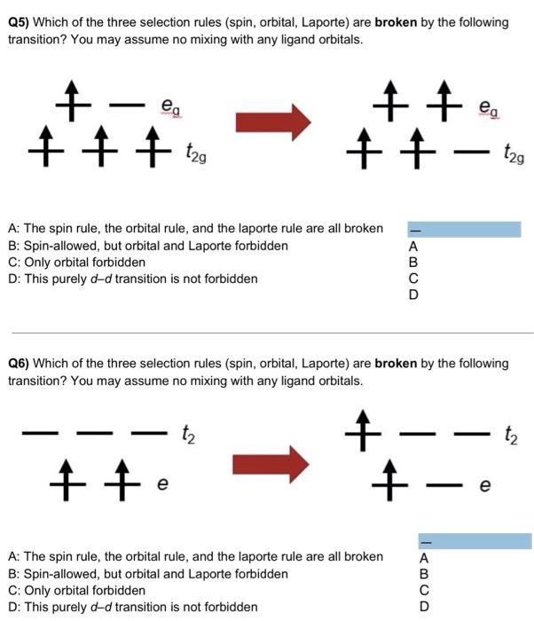 The 2 selection rules baesd on which electronic transitions are considered allowed or forbidden are the laporte selection rule and spin selection rule.an.